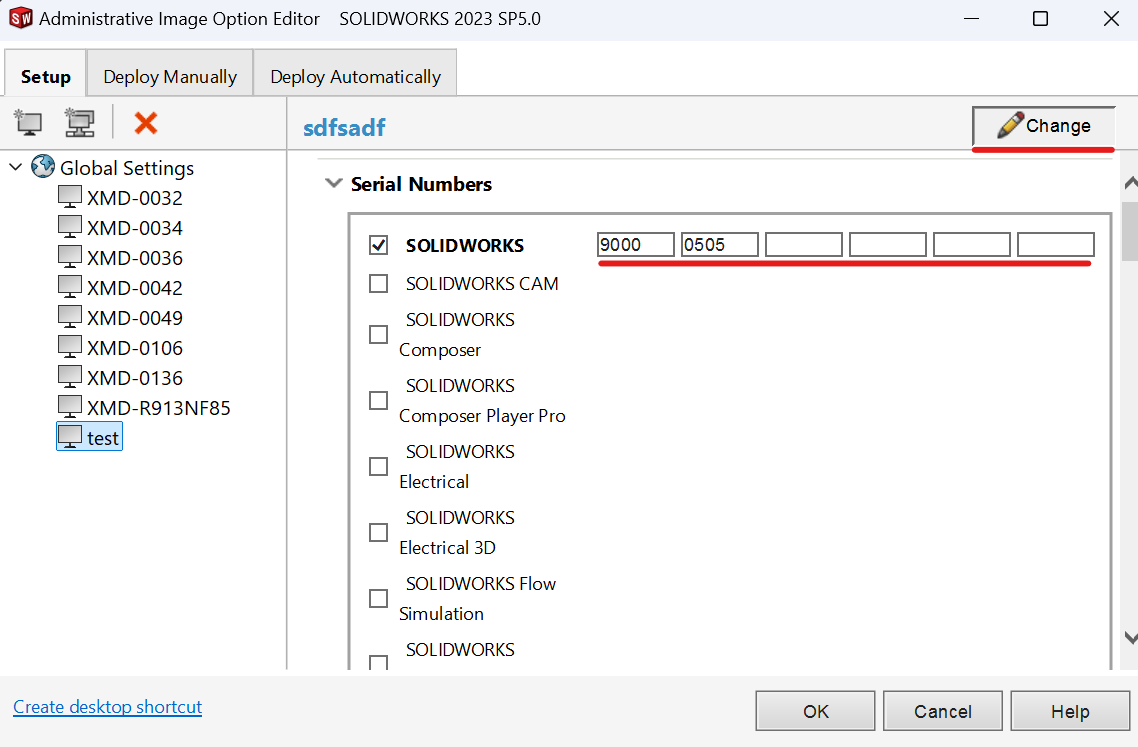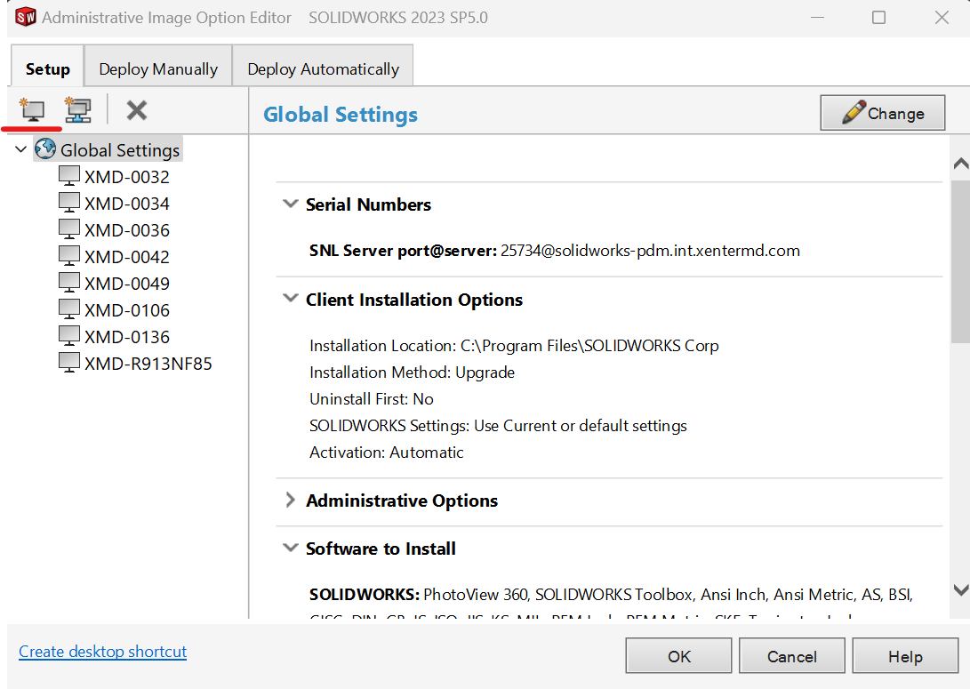1. After downloading the compressed SW file from SharePoint on your local machine. Open the sldAdminOptionEditor.exe. First select Global Settings, then in top left click New Machine with a computer symbol.