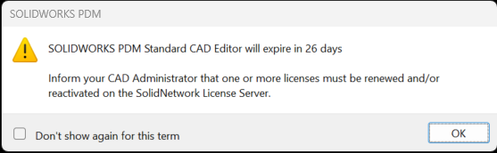 To resolve this error you need to contact GoEngineer support and request to go through the process for a new Activation Exemption Form. They will submit a form and tell you what to fill out. Provide the previous license file to ensure all licenses are accounted for on the activation exemption form. You can find it either in the SW server on the desktop or in the IT SharePoint Folder under Documents -> General -> SolidWorks -> Activation Exemeption Forms.